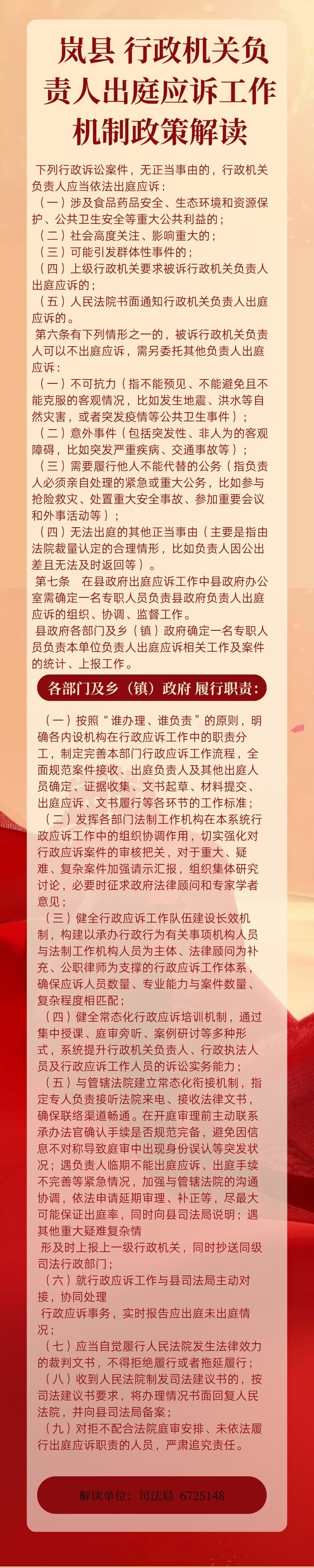 【图解】关于印发岚县行政机关负责人出庭应诉工作机制的通知