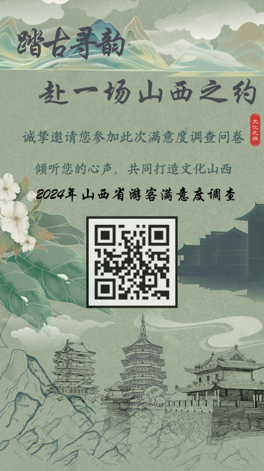 您好!为全面掌握我省文化旅游市场服务质量现状和游客满意度水平,健全以游客为中心的产品服务标准和评价体系,全面提升我省旅游服务质量,省文旅厅现公开邀请广大赴晋游客参与2024年山西省游客满意度调查工作。您可根据在我省旅游过程中的切身感受对相关市场主体给出客观真实的评价和建议,填写调查问卷。我们将对每一份调查问卷进行认真研究和分析,总结调研结果,改进工作方法,为广大游客提供更加优质的服务,全力叫响“旅游满意在山西”品牌。